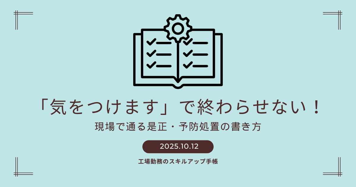 工程・設備・仕組みに組み込んで再発できない状態を作るのが是正処置の本質です🔧