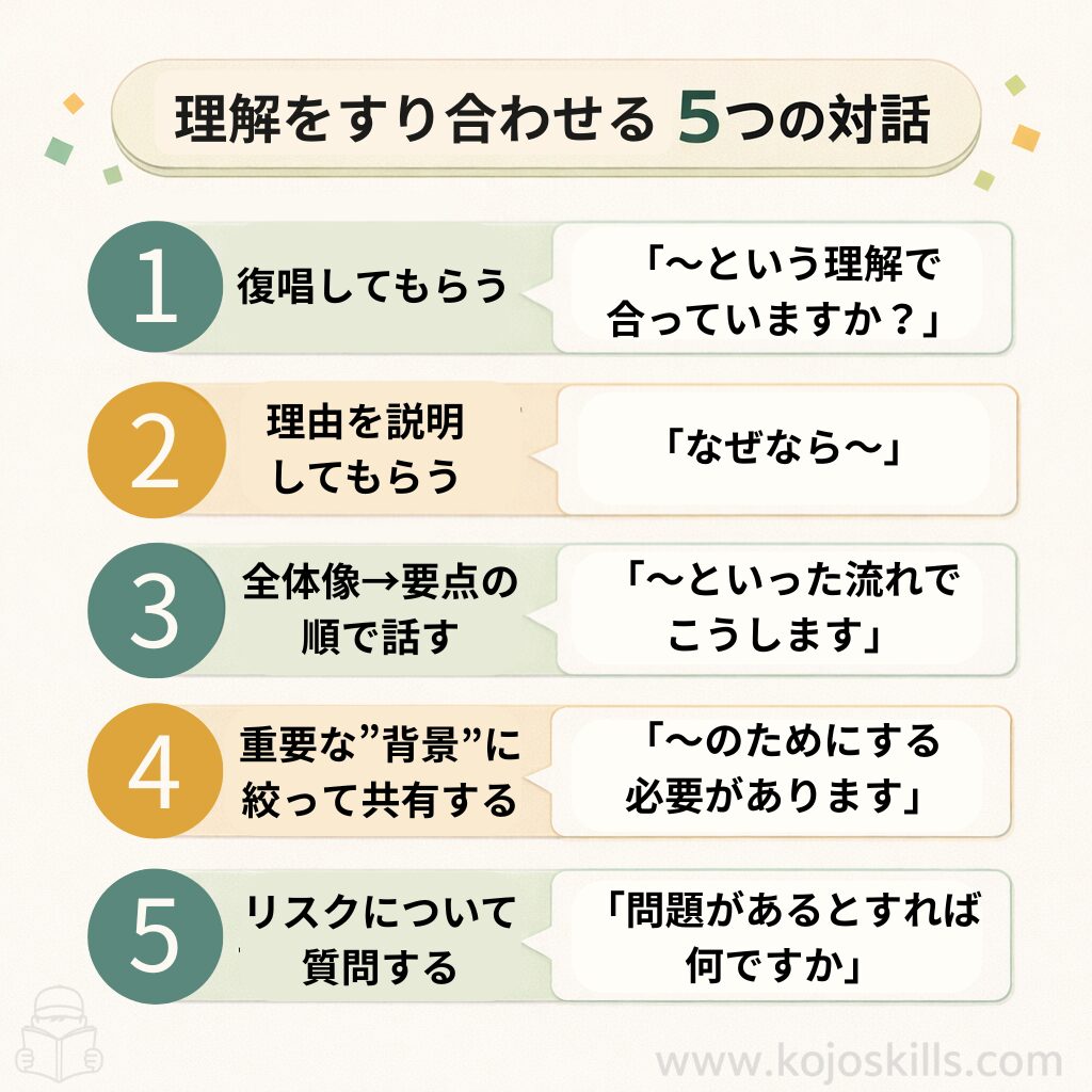 「理解をすり合わせるための対話スキル」を5つ紹介します。
