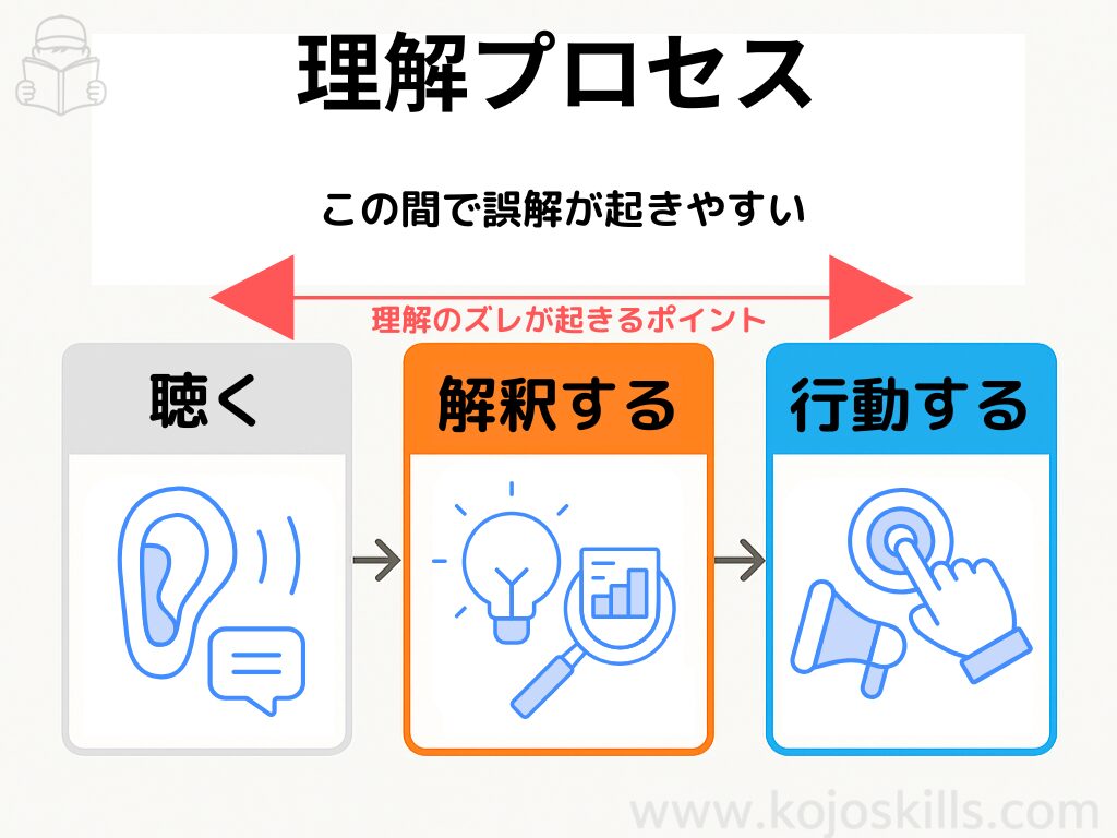 理解は3つの段階でズレる(聞く → 解釈 → 行動)】